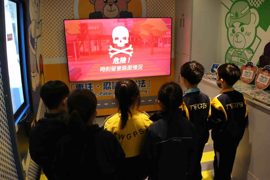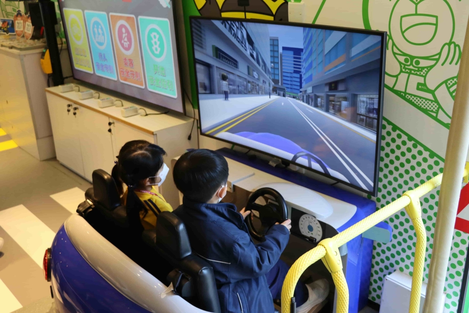 外觀可愛又充滿趣味的道路安全巴士,以交通總部吉祥物「熊Sir」生動活潑的形象為主題,向大眾推廣道路安全訊息。車廂內設有多項互動學習遊戲,包括模擬不同過馬路情境的體驗、交通安全問答遊戲及模擬駕駛活動,讓同學們在遊戲中學習正確的道路安全知識,培養大家守法、安全出行的良好態度。