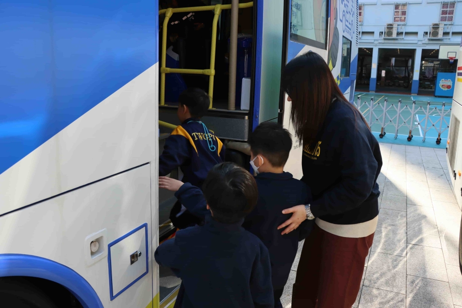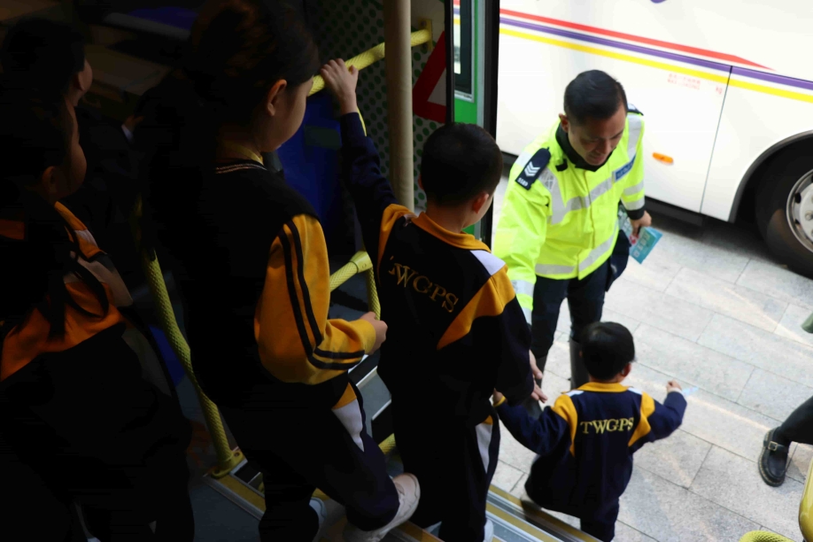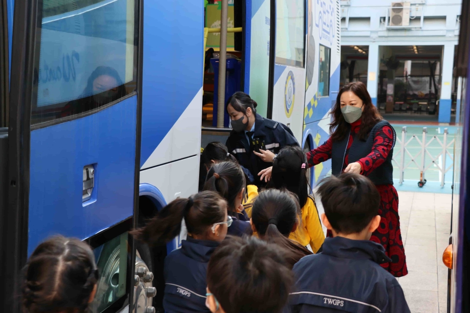 12/01/20262026年1月12日(星期一)及1月13日(星期二),本校邀請了香港警務處交通部的「道路安全巴士」到校,讓一年級的同學可以到巴士上參與生活化及具趣味性的活動,從遊戲中學習。
