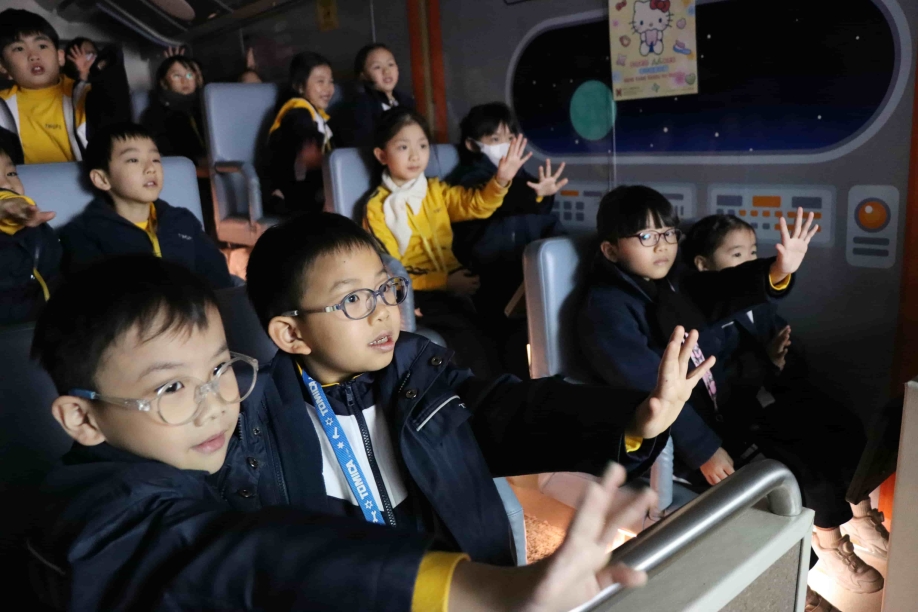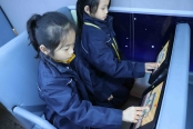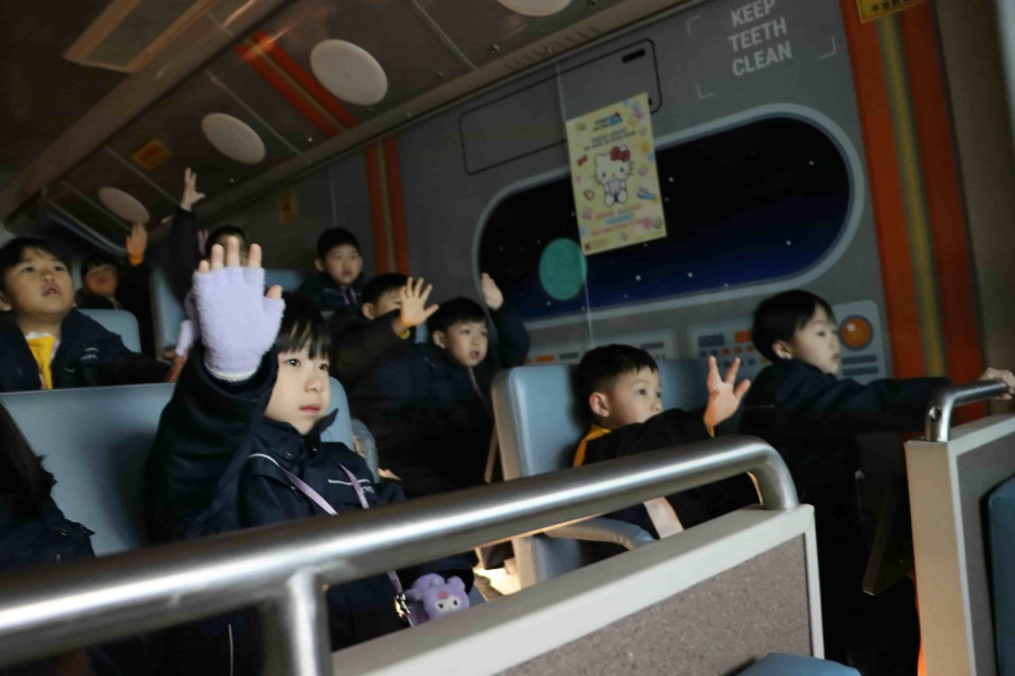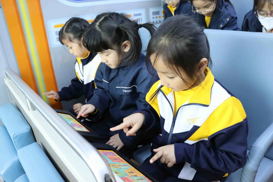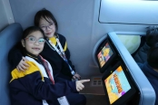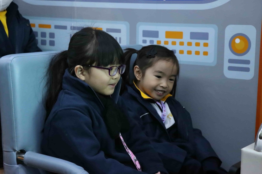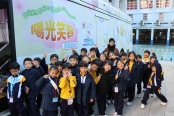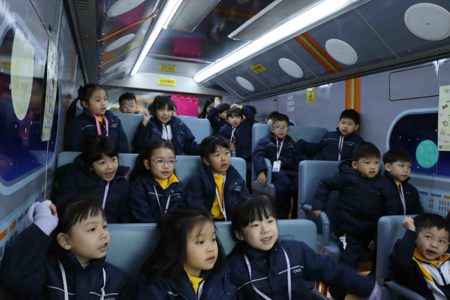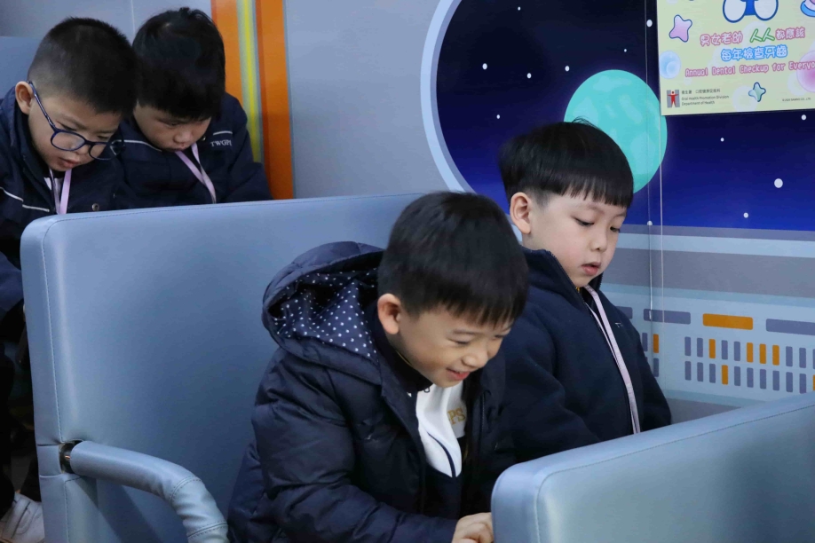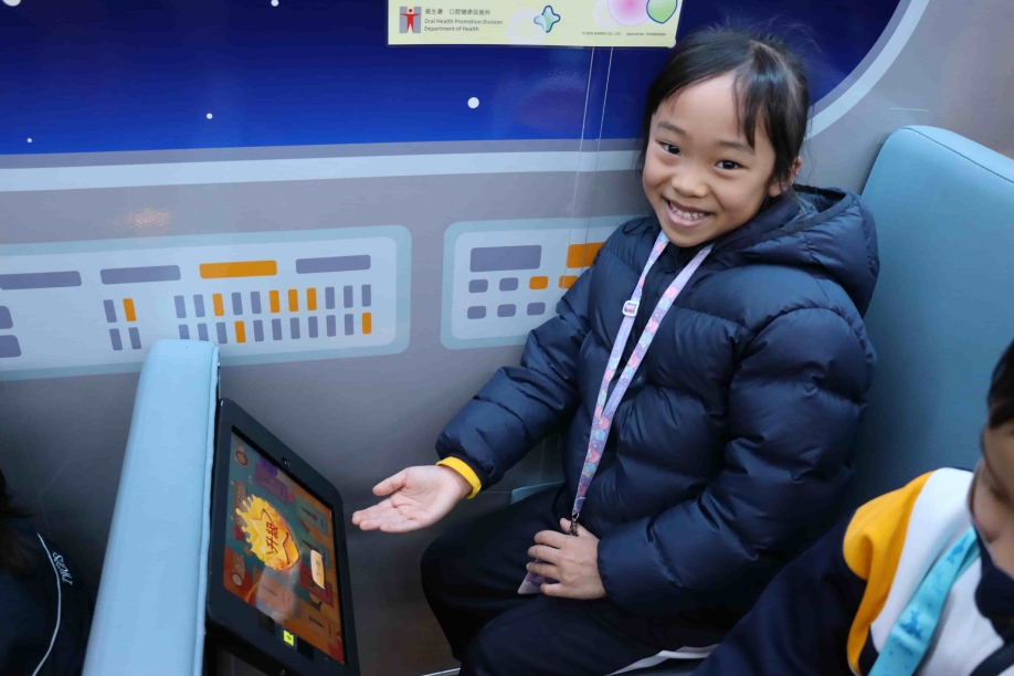 當天,學生登上「護齒教育車」,導師透過多媒體方式展開教學。活動開始,導師播放互動影片,引導學生認識牙齒生長過程及日常護齒知識。同學觀看影片時專注投入,隨後的問答環節亦積極回答與護齒相關的問題,表現十分踴躍。