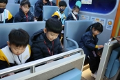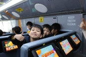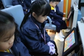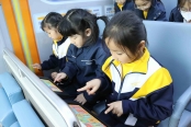 在掌握護齒基本知識後,導師安排學生進行遊戲體驗。同學們使用車內座位上配置的平板電腦,共玩了三個「護齒主題」的電子遊戲。通過遊戲,學生進一步鞏固愛牙護齒的知識和注意口腔護理的良好習慣。在遊戲過程中,同學們的反應都非常熱烈和投入。「陽光笑容流動教室」活動順利舉行。