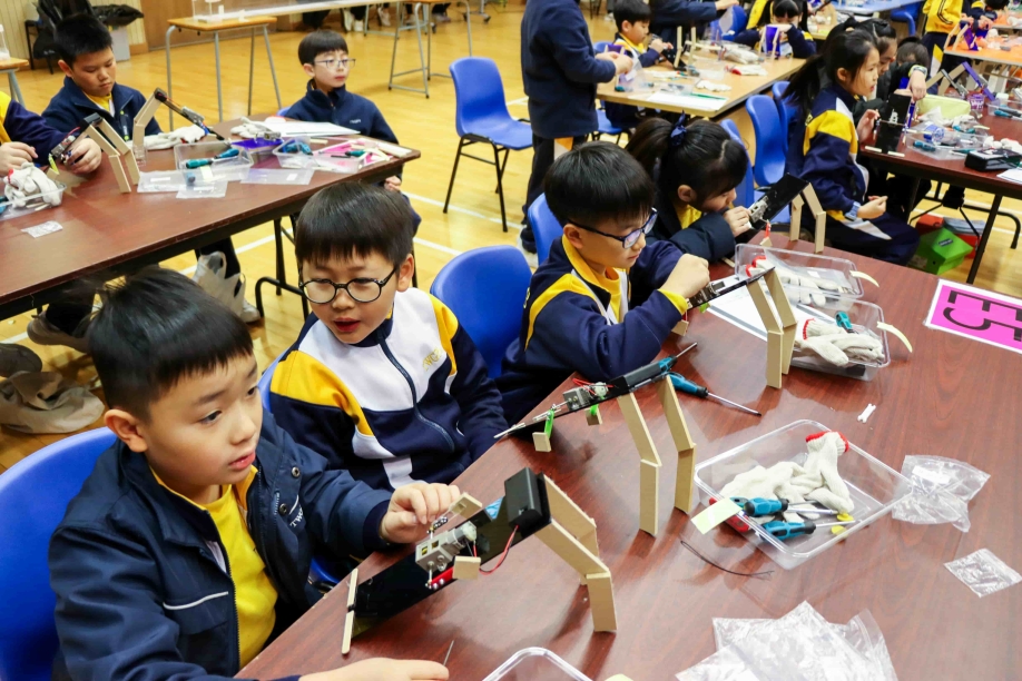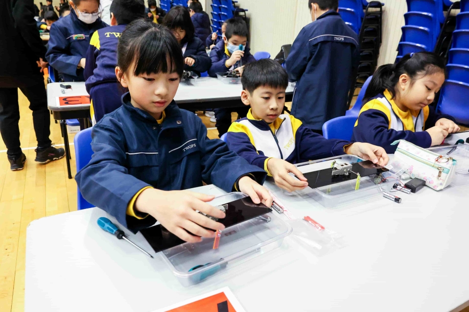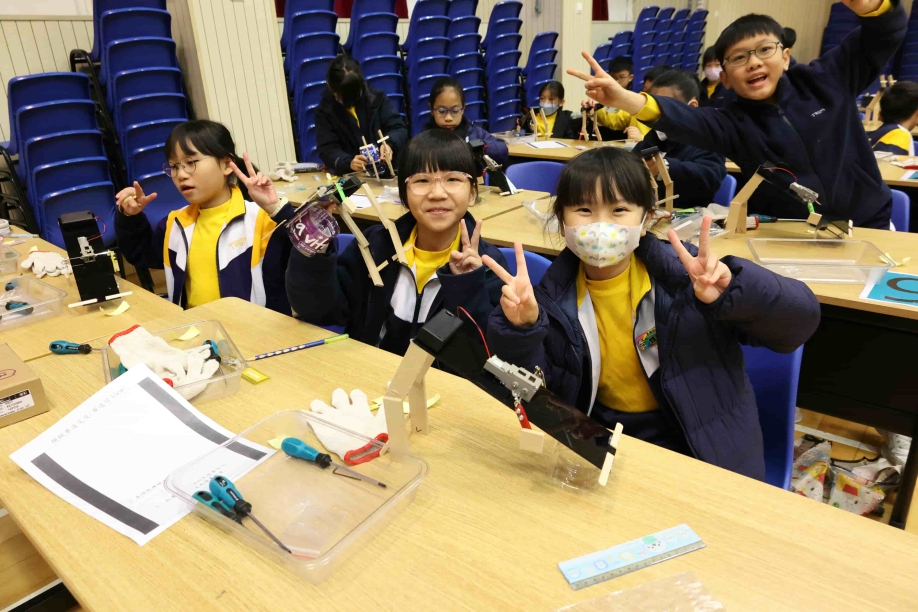 學生在製作過程中全神貫注,勇於挑戰自我,並展現了同心協力的團隊精神。當機械人完成並成功運作時,同學的臉上洋溢着雀躍與自豪的笑容。雖然同學首次使用十字批、一字批及套筒等工具,但仍能安全而正確地操作,順利完成任務。最後,同學更帶着自己創造的機械人參加賽跑比賽,現場氣氛熱烈,禮堂裏盡是此起彼落的歡呼聲。