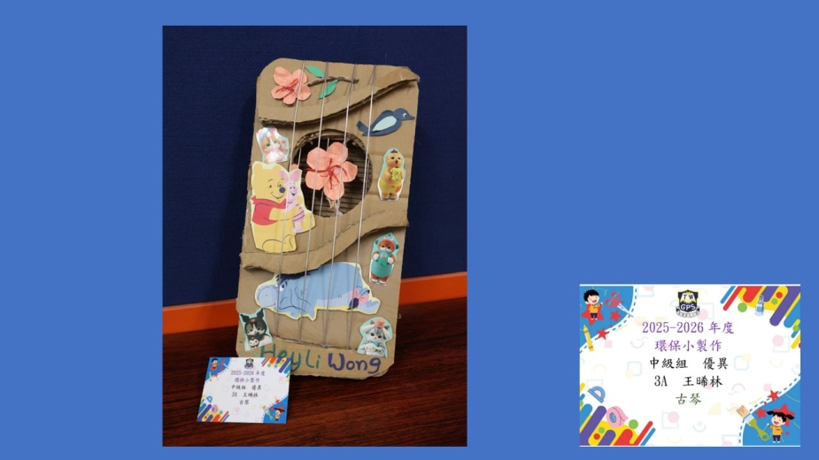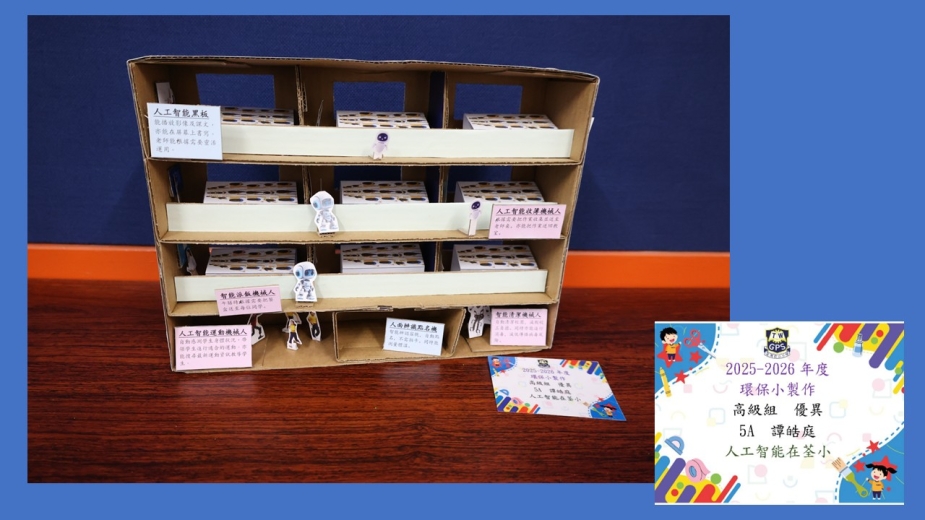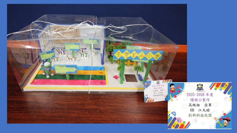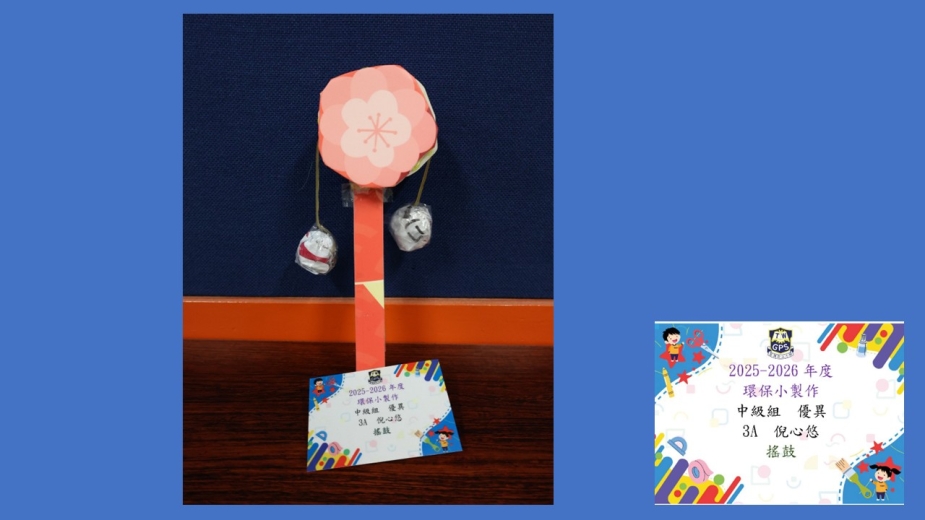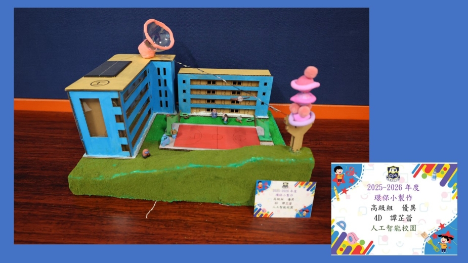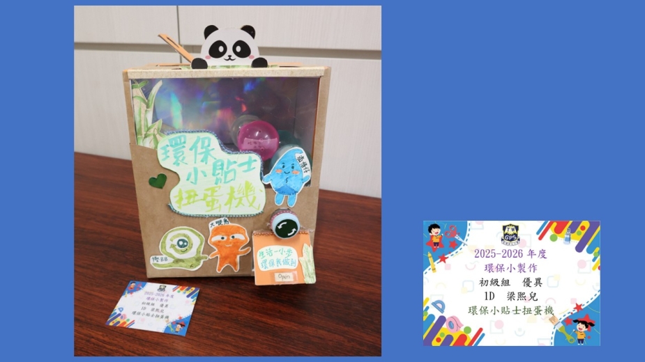 「環保小製作」比賽,讓同學透過運用環保物料,盡情發揮創意,將創作意念呈現在不同主題的作品裏,更藉此提高學生對環境保護及善用資源的意識。
